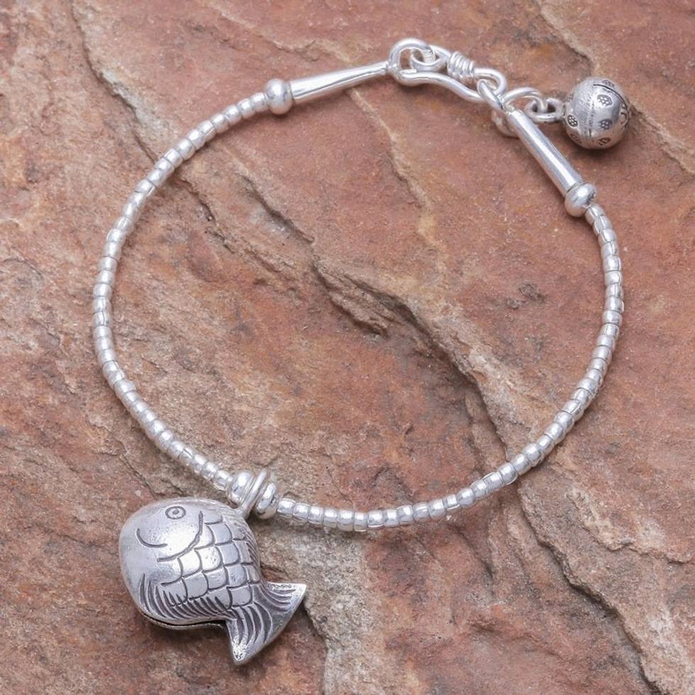Karen Hill Tribe Silver Goldfish Bracelet with Ringing Bells 'Singing Hill Tribe Goldfish' Item ID: 2671641590