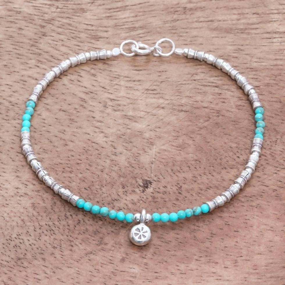 Karen Reconstituted Turquoise Beaded Bracelet from Thailand 'Karen Glee' Item ID: 2671641666