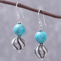 Karen Silver and Recon. Turquoise Earrings from Thailand 'Gorgeous Spirals' Item ID: 2671640763