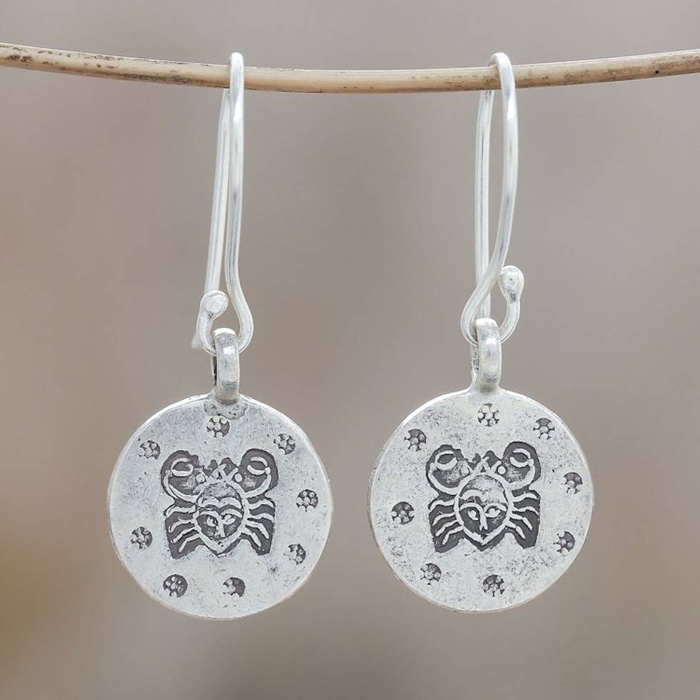 Karen Silver Cancer Dangle Earrings from Thailand 'Karen Cancer' Item ID: 2671798885