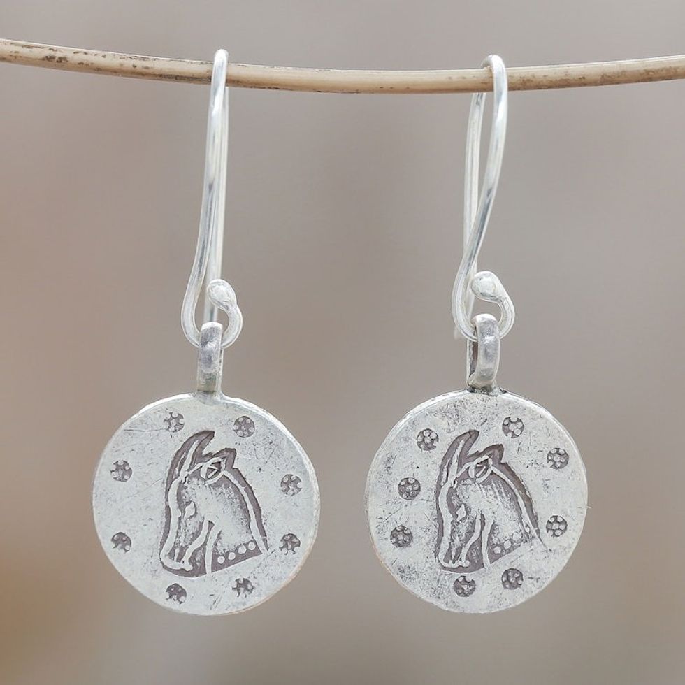 Karen Silver Capricorn Dangle Earrings from Thailand 'Karen Capricorn' Item ID: 2671798901