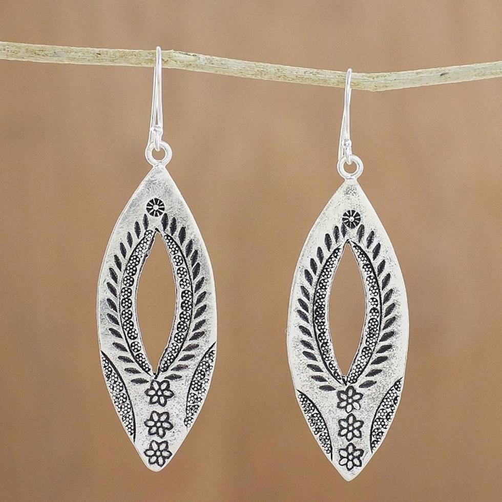 Karen Silver Dangle Earrings with Floral Stamps 'Karen Portals' Item ID: 2671800937