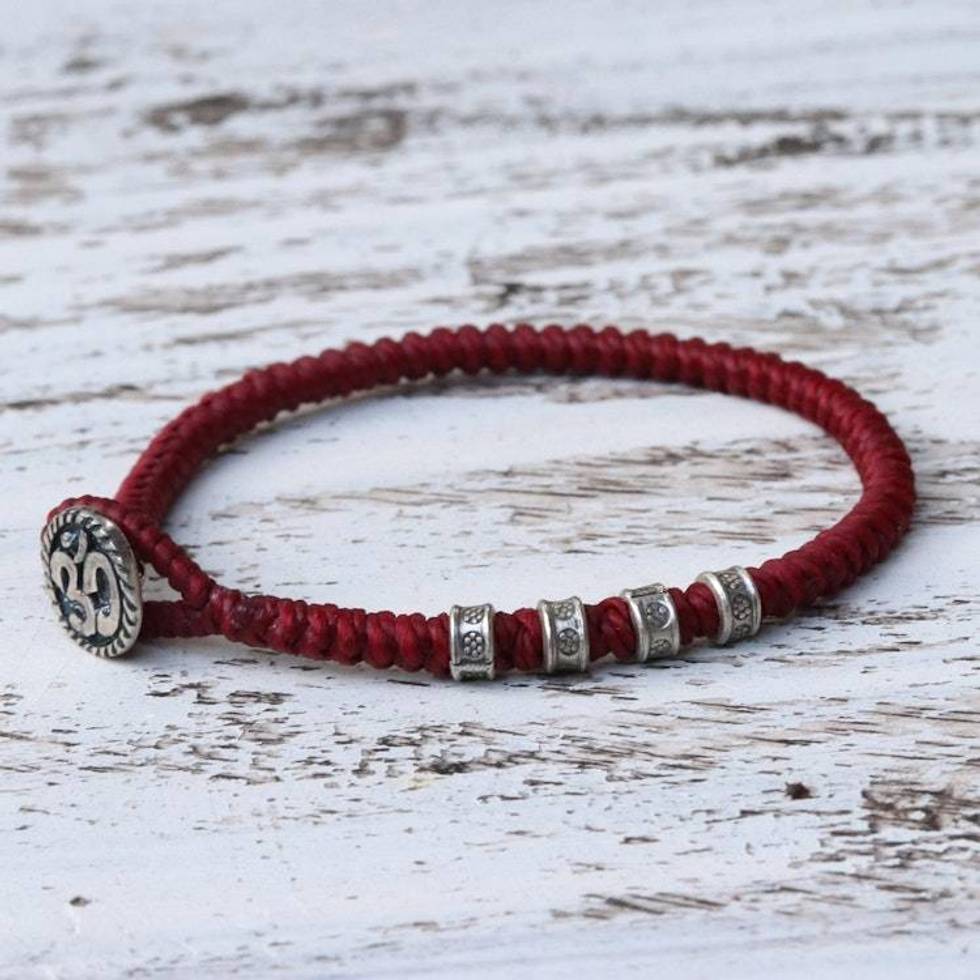 Karen Silver Om Wristband Bracelet in Red from Thailand 'Living Om in Red' Item ID: 2676649219