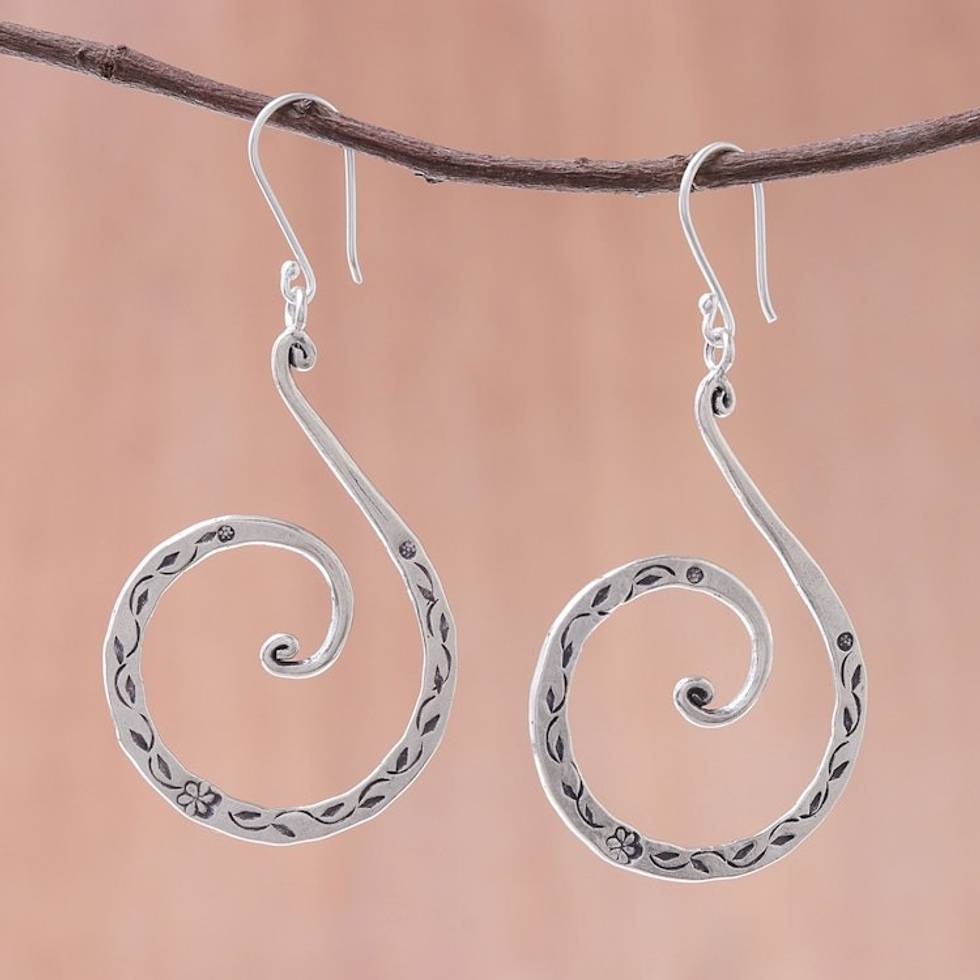 Karen Silver Spiral Dangle Earrings from Thailand 'Karen Breeze' Item ID: 2671798475