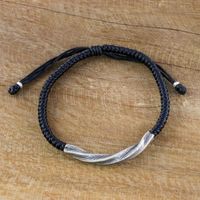 Karen Silver Wristband Bracelet in Black from Thailand 'Karen Twist in Black' Item ID: 2671801301