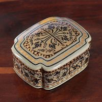 Kashmir-Inspired Leaf-Themed Black and Golden Decorative Box 'Kashmir Puissance' Item ID: 2676663986