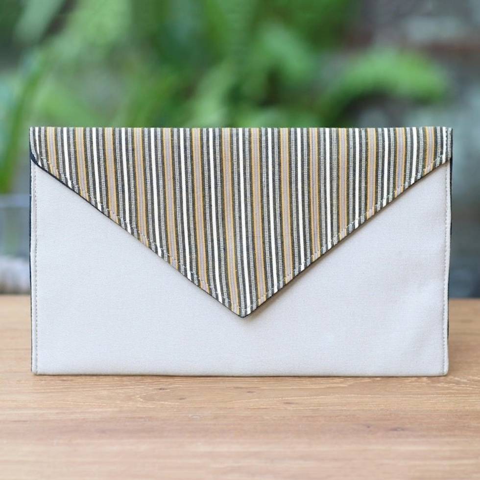 Khaki and Orange Cotton Wristlet Clutch with Interior Pocket 'Lurik Amplop Khaki' Item ID: 2671735555
