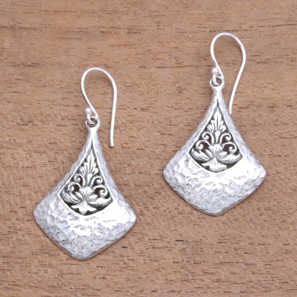 Kit-Shaped Sterling Silver Dangle Earrings from Bali 'Floral Kites' Item ID: 2671745007