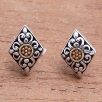 Kite-Shaped Gold Accented Sterling Silver Button Earrings 'Kite Bouquet' Item ID: 2671737639
