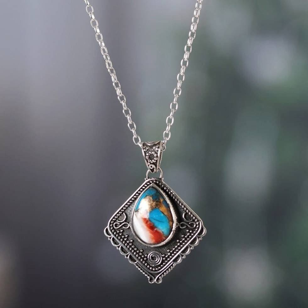 Kite-Shaped Recon Turquoise Pendant Necklace from India 'Colorful Kite' Item ID: 2671787012