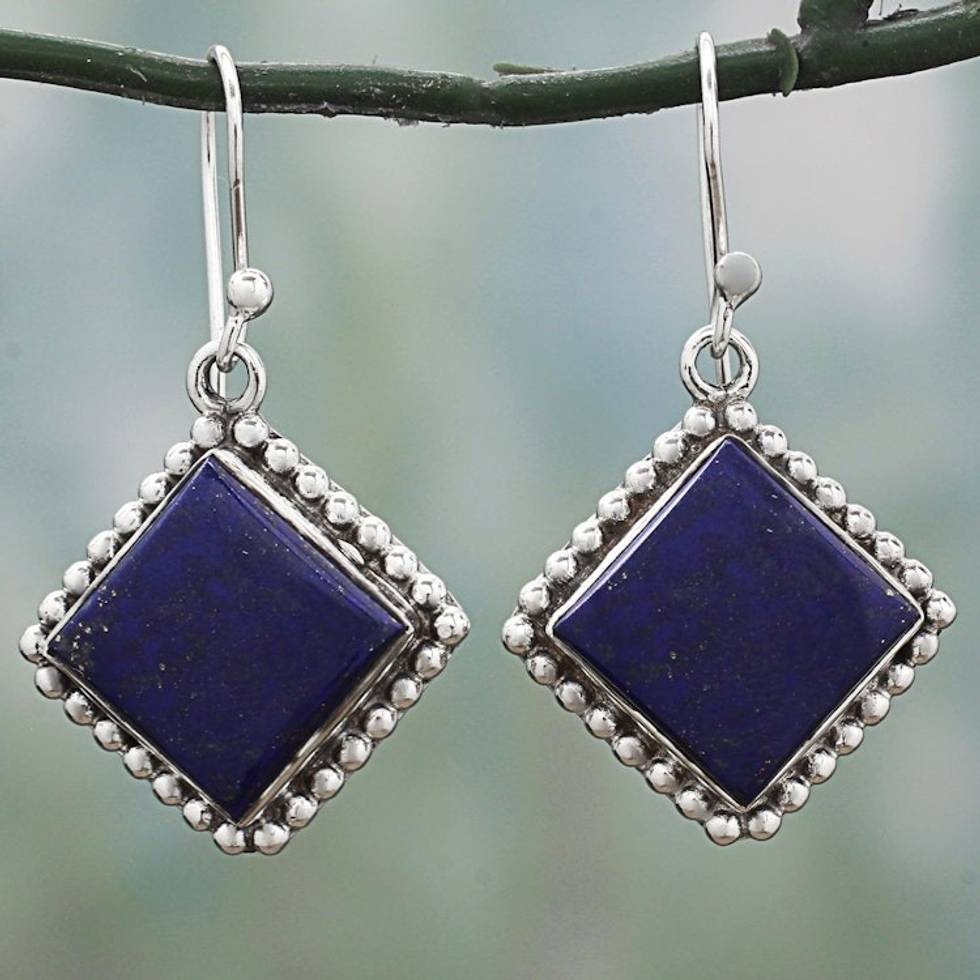 Kite Shaped Sterling Silver Lapis Lazuli Dangle Earrings 'Blue Kite' Item ID: 2671618647