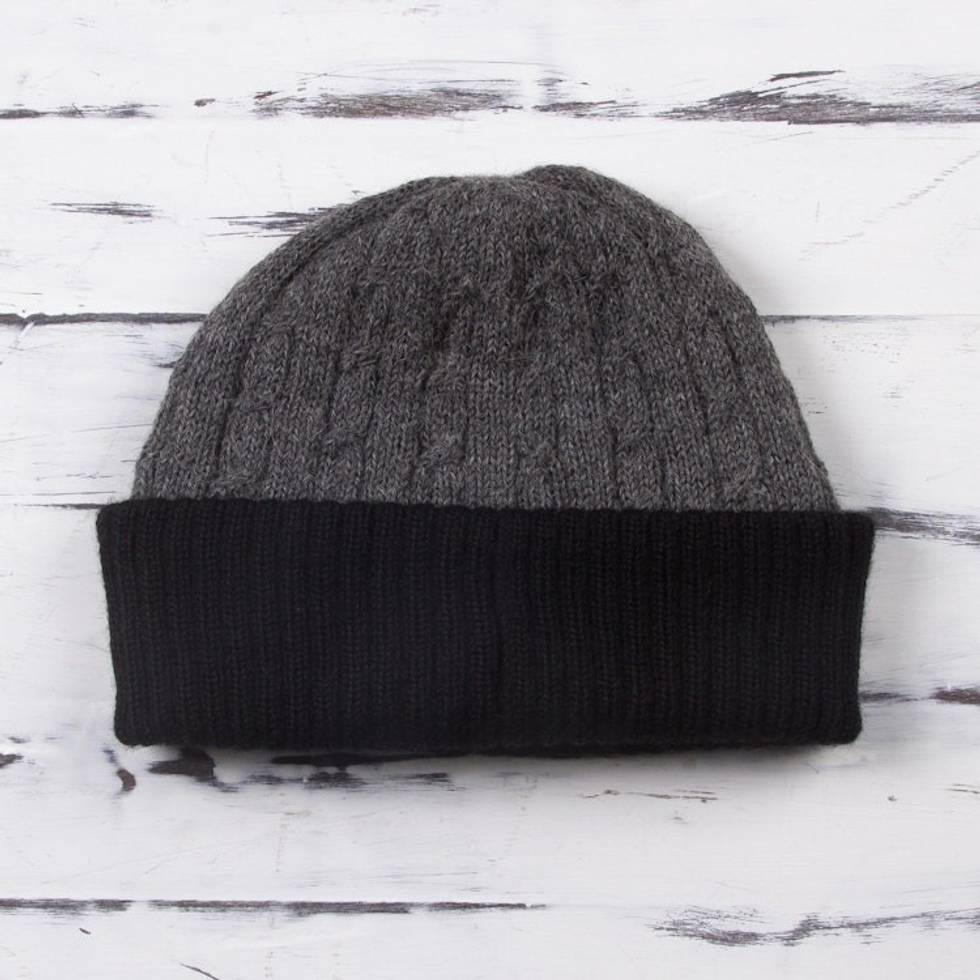 Knit 100 Alpaca Hat in Smoke and Black from Peru 'Warm Braids in Smoke' Item ID: 2671820093