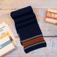 Knit Classic Indigo and Orange 100 Baby Alpaca Scarf 'Indigo Andes' Item ID: 2671401688