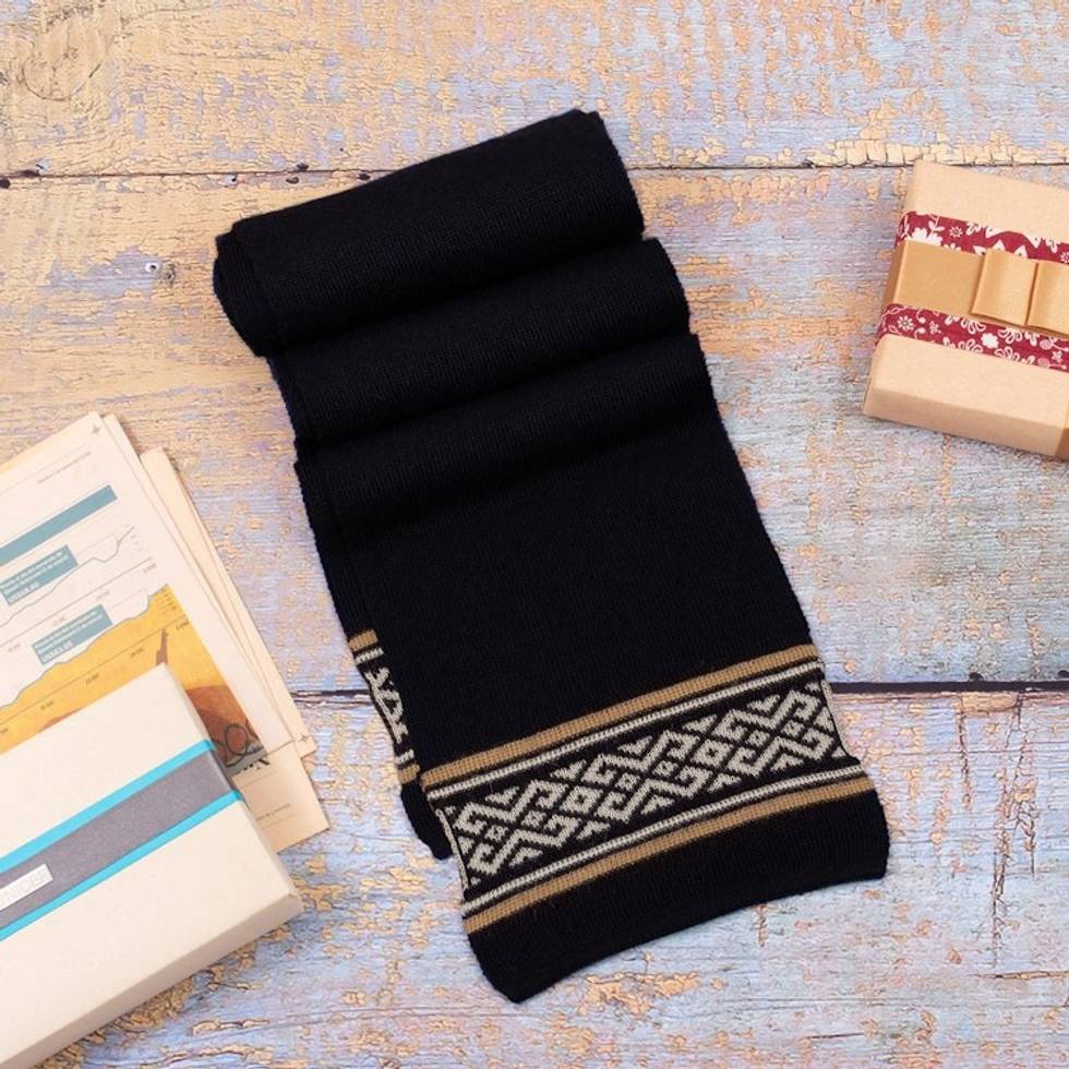 Knit Classic Onyx and Snow White 100 Baby Alpaca Scarf 'Onyx Andes' Item ID: 2671400020