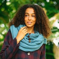 Knit Cotton Convertible Scarf in Teal from Thailand 'Dreamscape in Teal' Item ID: 2671798557