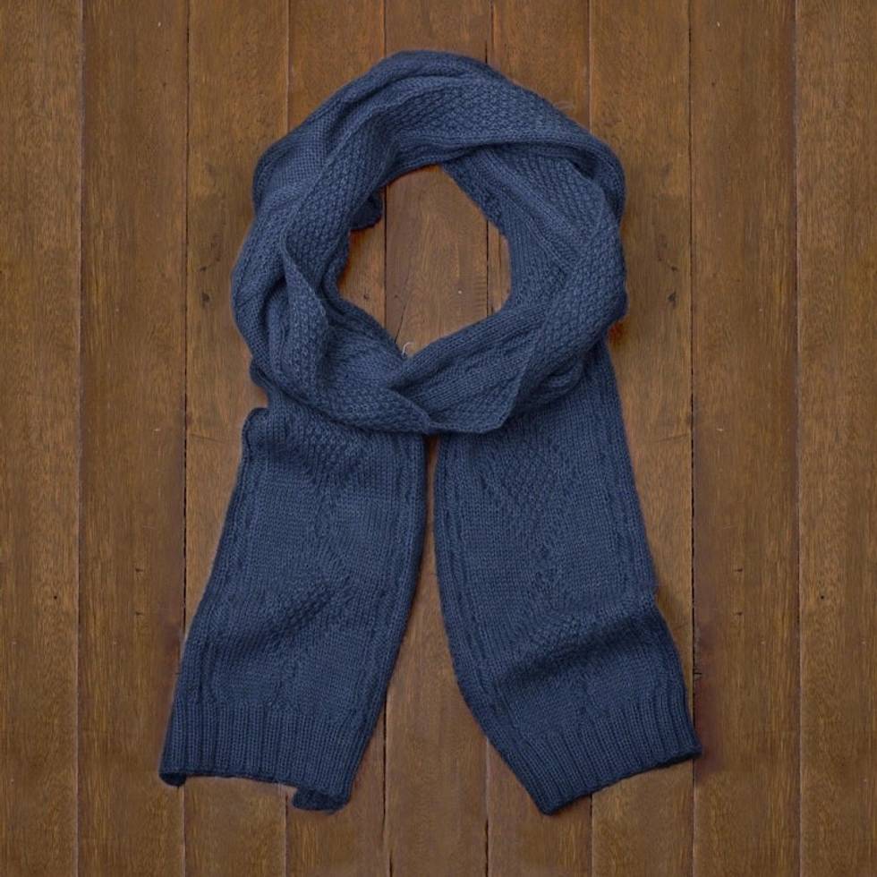 Knitted Unisex Scarf in Azure 100 Alpaca from Peru 'Antique Cable Knit' Item ID: 2671819366