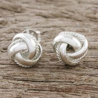 Knot Motif Sterling Silver Stud Earrings from Thailand 'Sweet Knots' Item ID: 2669925725
