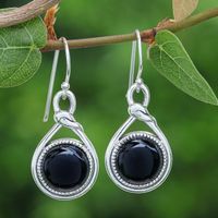 Knot Pattern Black Onyx Dangle Earrings from Thailand 'Enigmatic Knot' Item ID: 2671796755