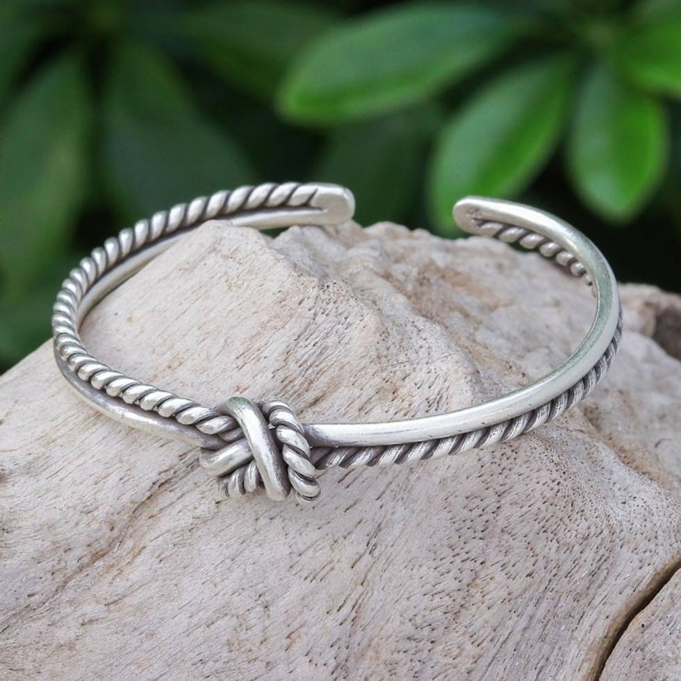 Knotted Sterling Silver Cuff Bracelet 'Both Sides' Item ID: 2671640808
