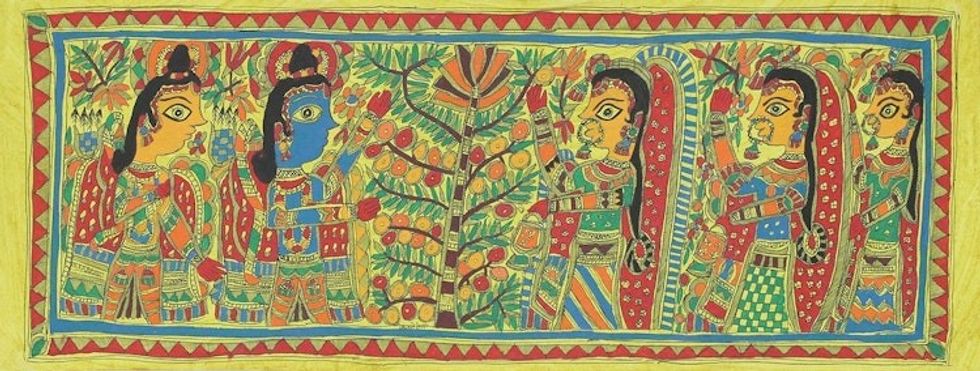 Krishna and the Tree of Life Authentic Madhubani Painting 'Krishna and the Tree of Life' Item ID: 2671791054