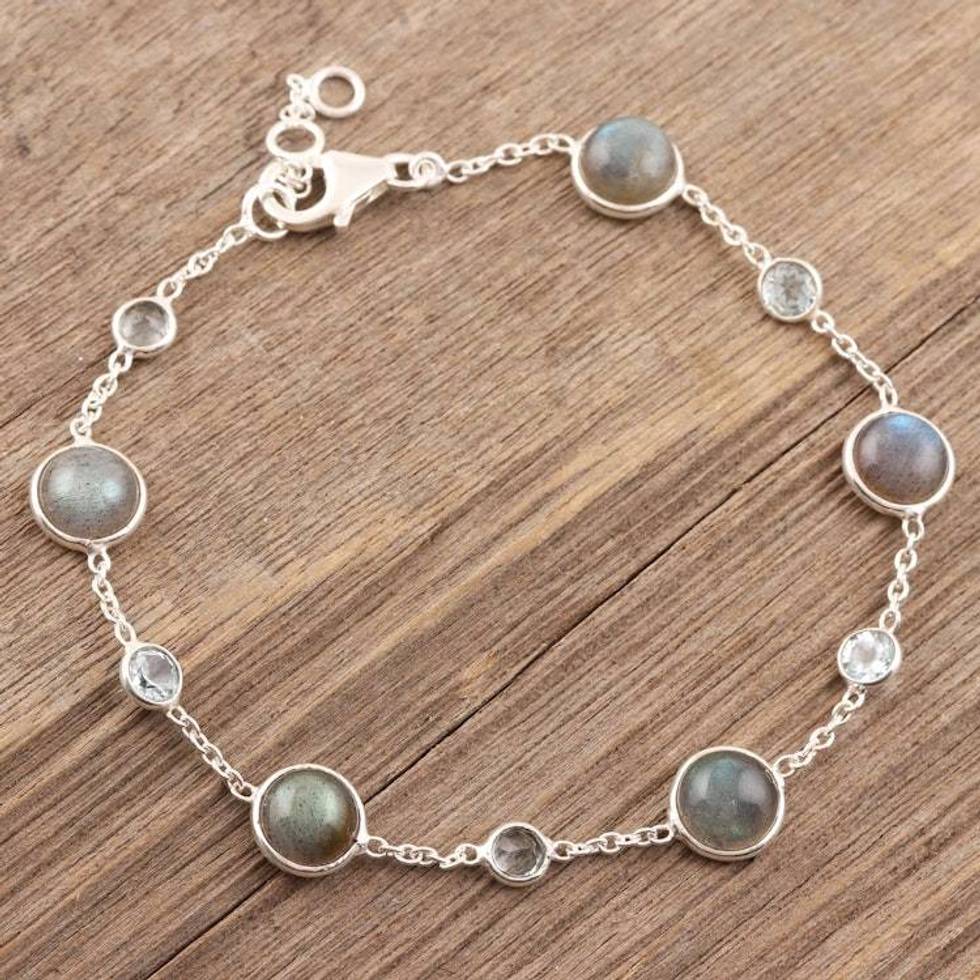 Labradorite and Blue Topaz Station Bracelet from India 'Majestic Mist' Item ID: 2676663802