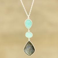 Labradorite and Chalcedony Pendant Necklace from India 'Aurora Combination' Item ID: 2669924384