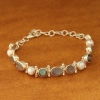 Labradorite and Cultured Pearl Link Bracelet from India 'Pure Charm' Item ID: 2669956109