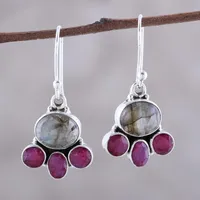 Labradorite and Pink Agate Sterling Silver Dangle Earrings 'Earth Aglow' Item ID: 2669925557