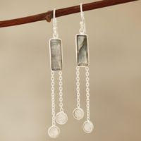 Labradorite and Rainbow Moonstone Dangle Earrings from India 'Misty Cheer' Item ID: 2669923792