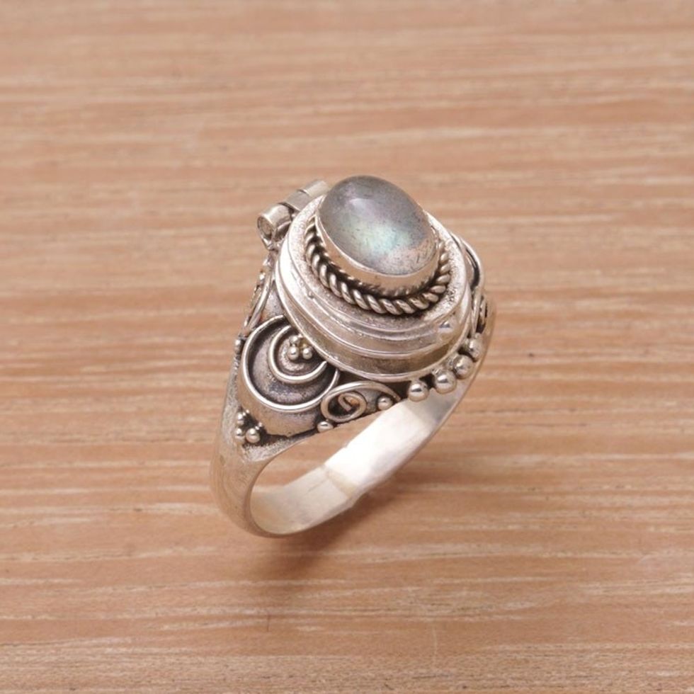 Labradorite and Sterling Silver Locket Ring from Bali 'Shimmering Shrine' Item ID: 2670122360