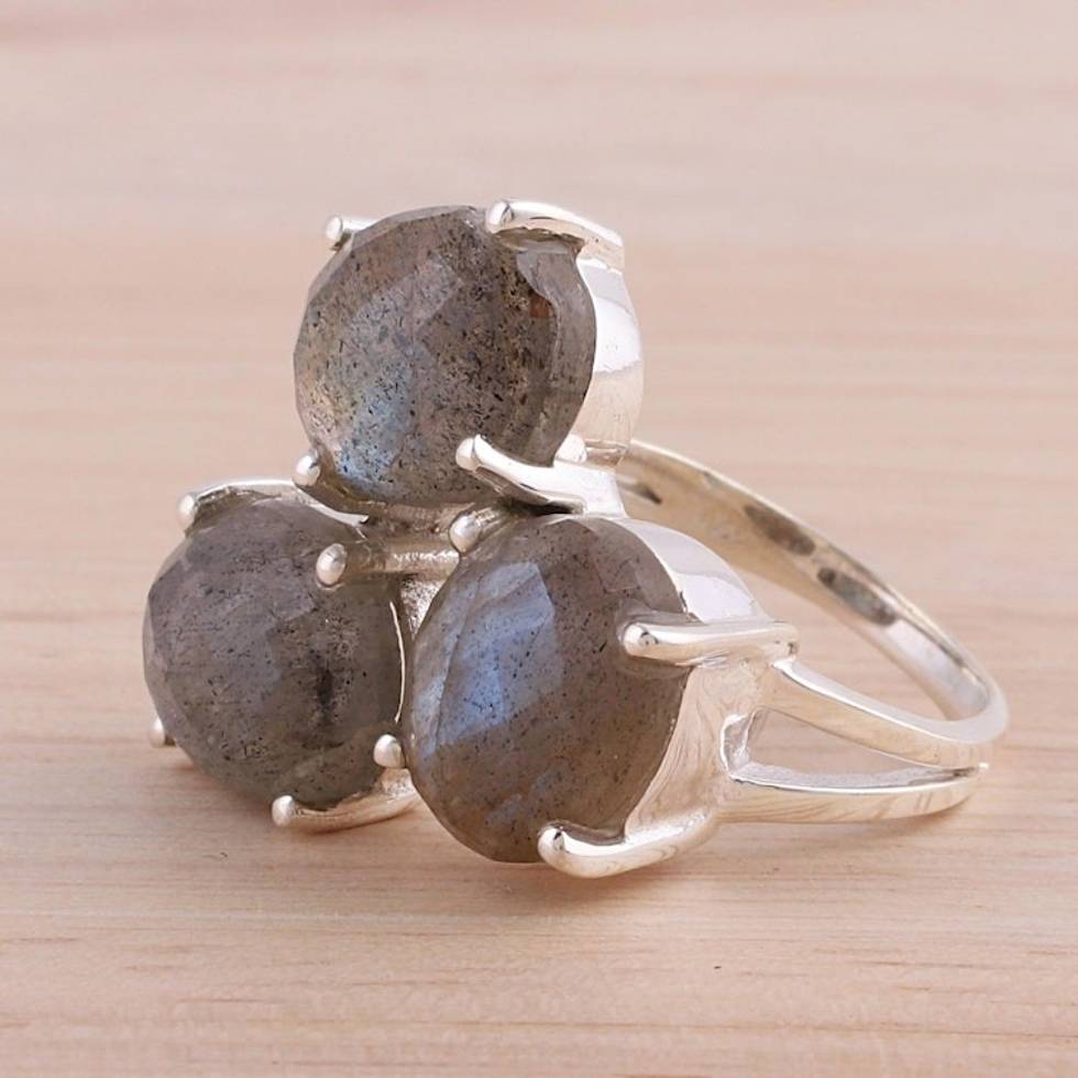 Labradorite and Sterling Silver Multi Stone Ring from India 'Bold Trio' Item ID: 2669942095