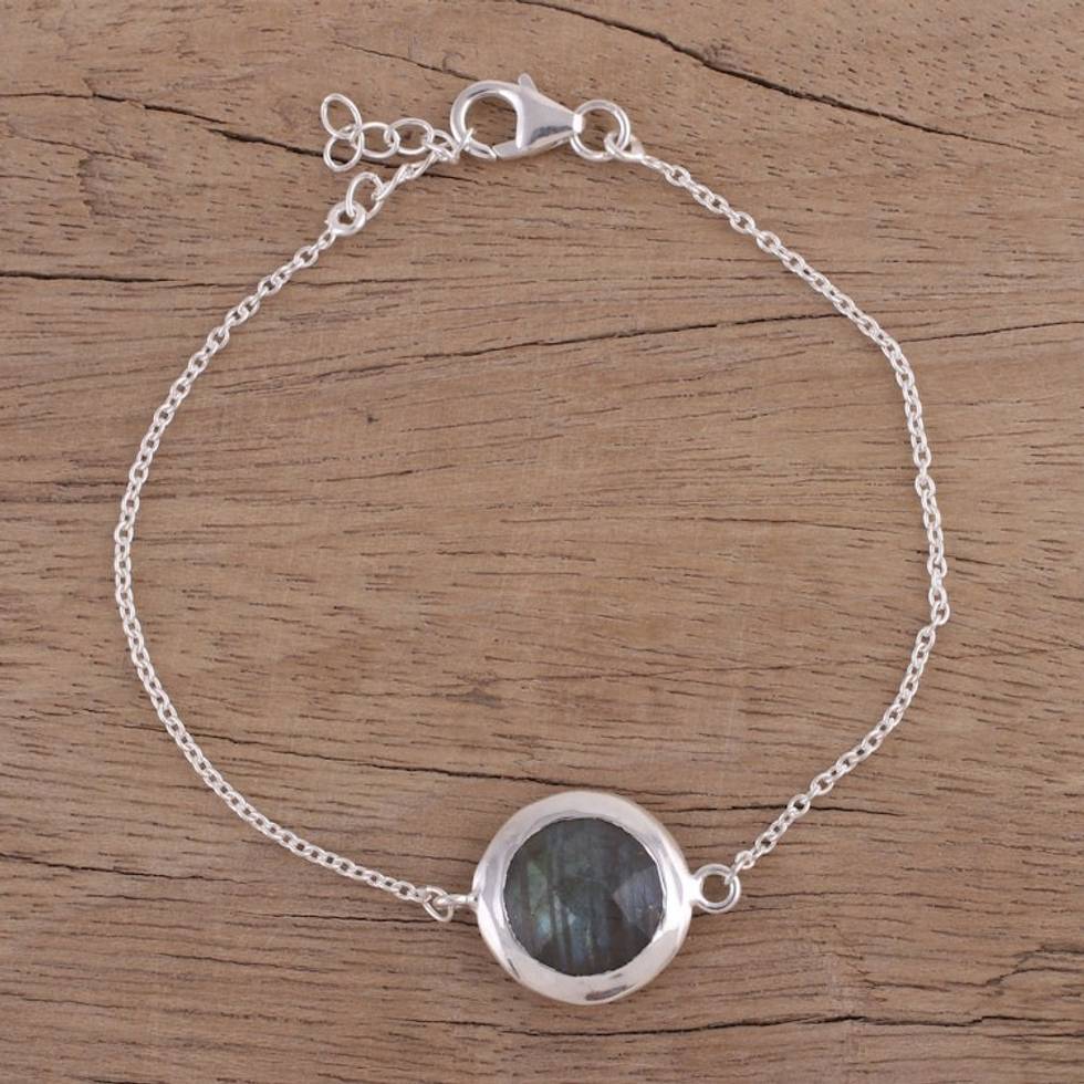 Labradorite and Sterling Silver Pendant Bracelet from India 'Circular Shine' Item ID: 2671791021