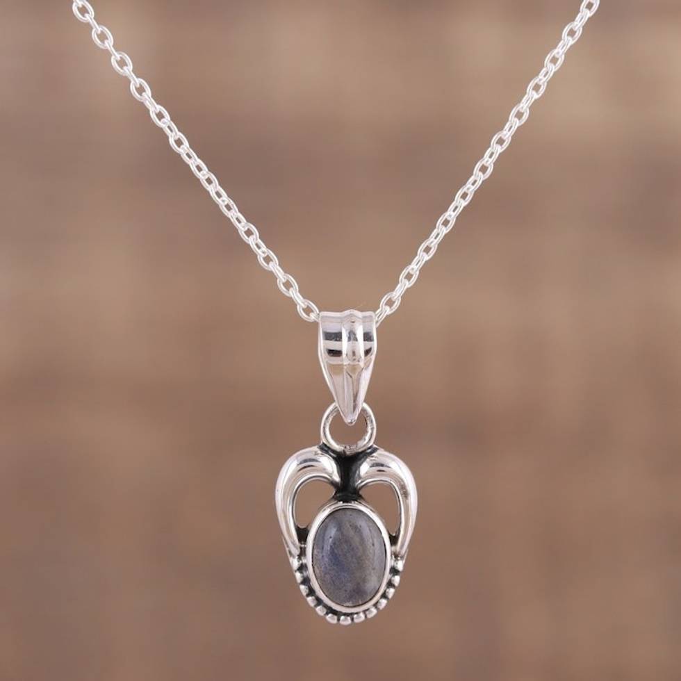 Labradorite and Sterling Silver Pendant Necklace from India 'Misty Wonder' Item ID: 2671790471