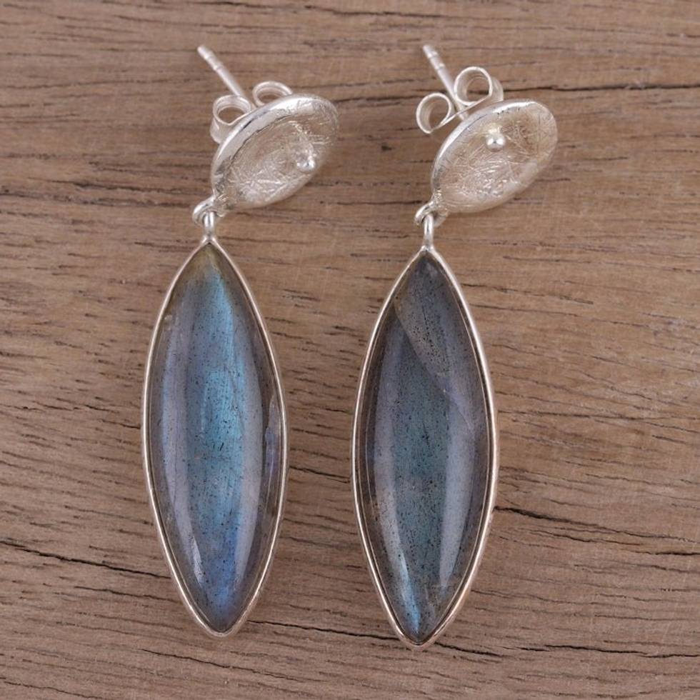 Labradorite and Textured Sterling Silver Earrings 'Grey Eyes' Item ID: 2671791274