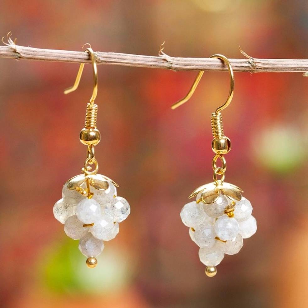 Labradorite Bead Cluster Earrings on 14k Gold Plating 'Luminous Grapes' Item ID: 2671808465