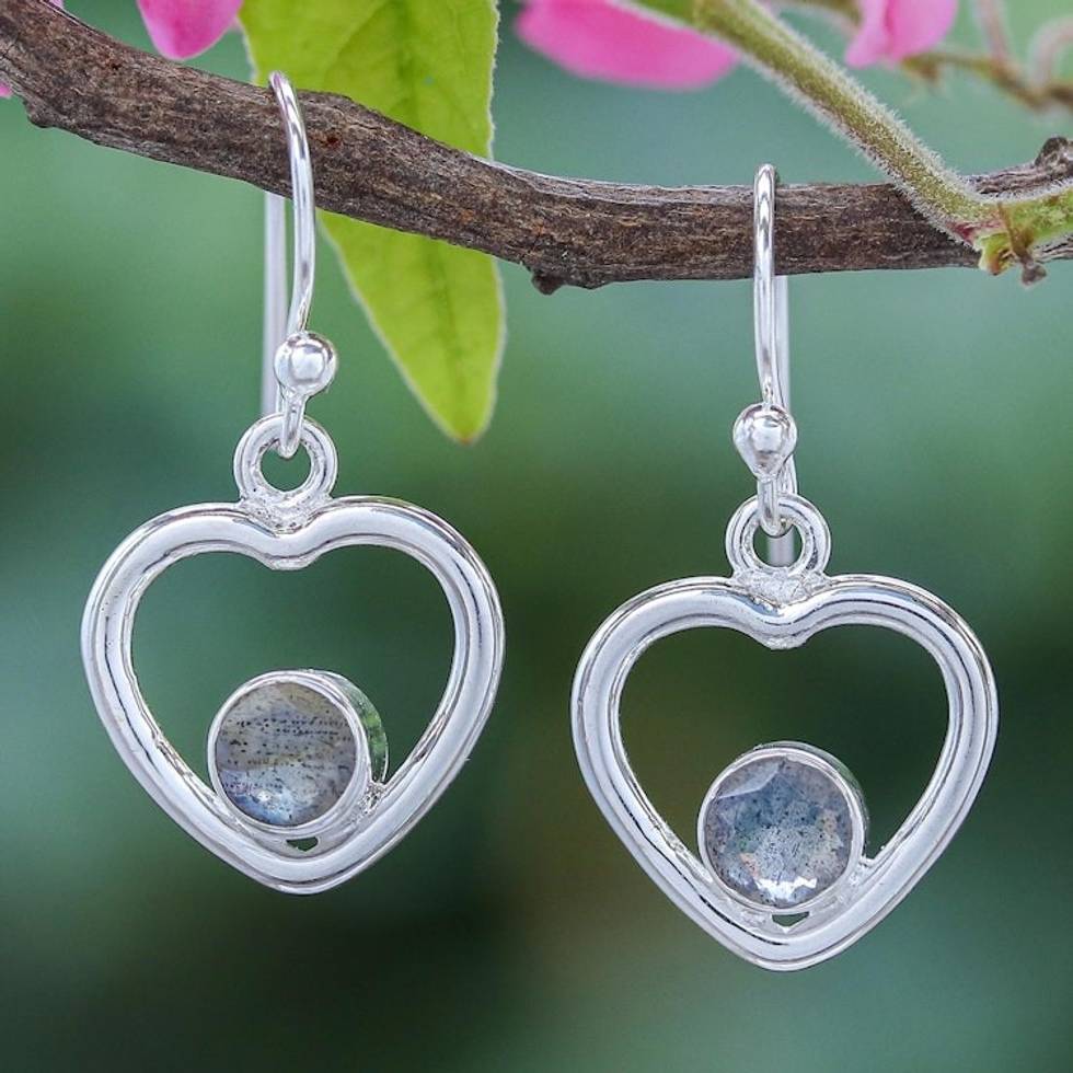 Labradorite Dangle Earrings with Heart Motif 'Earnest Offer in Iridescent' Item ID: 2671641039