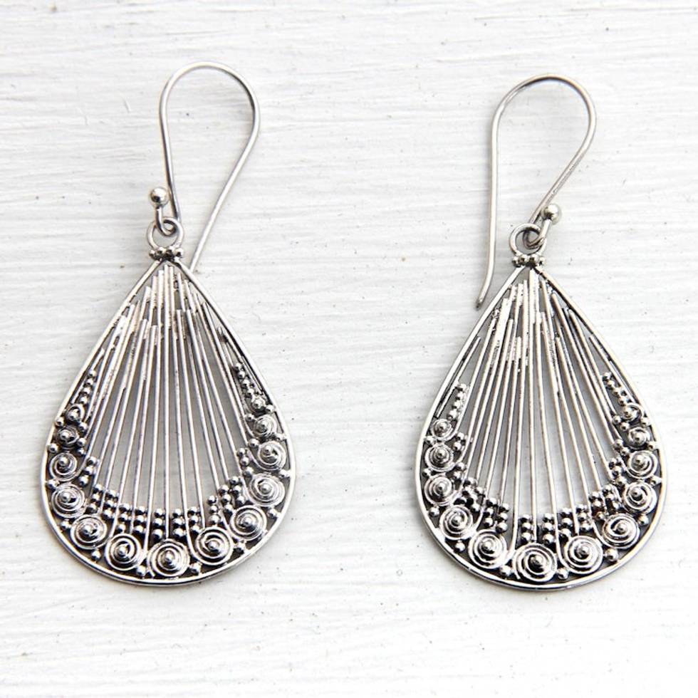 Lacy Handcrafted Sterling Silver Earrings from Bali 'Peacock Feather' Item ID: 2669922324