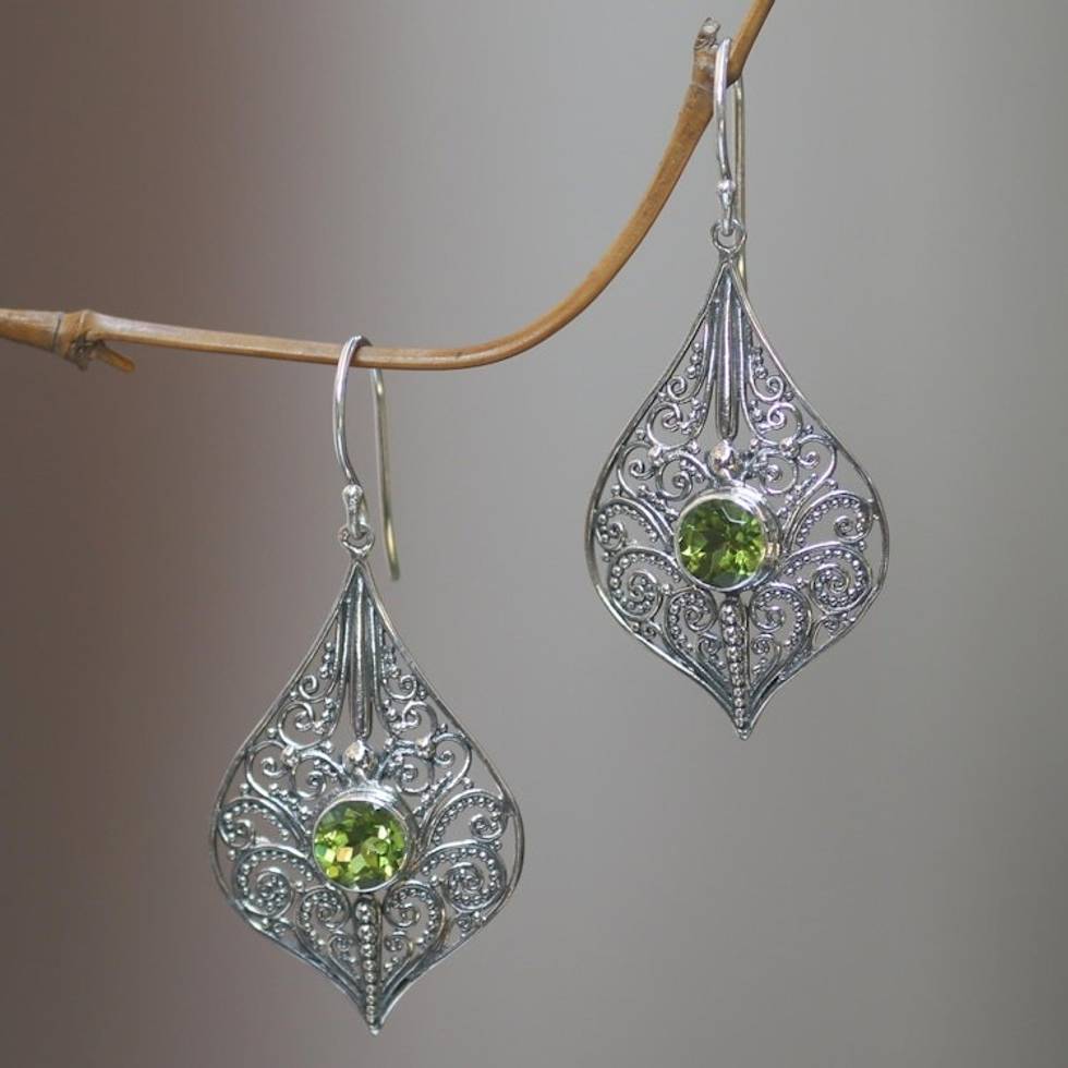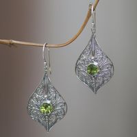 Lacy Sterling Silver Dangle Earrings with Peridot Gems 'Shine On' Item ID: 2671702573