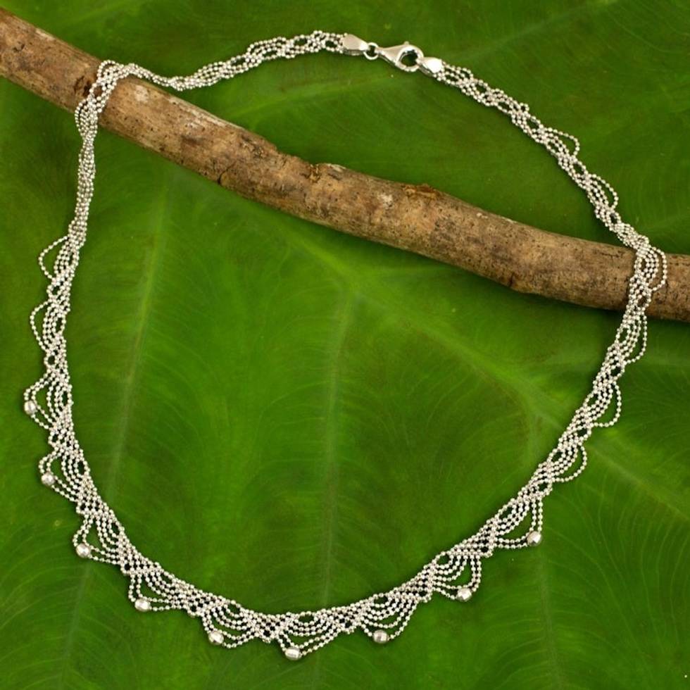 Lacy Sterling Silver Necklace Crafted from Ball Chain 'Deco Lace' Item ID: 2669928592