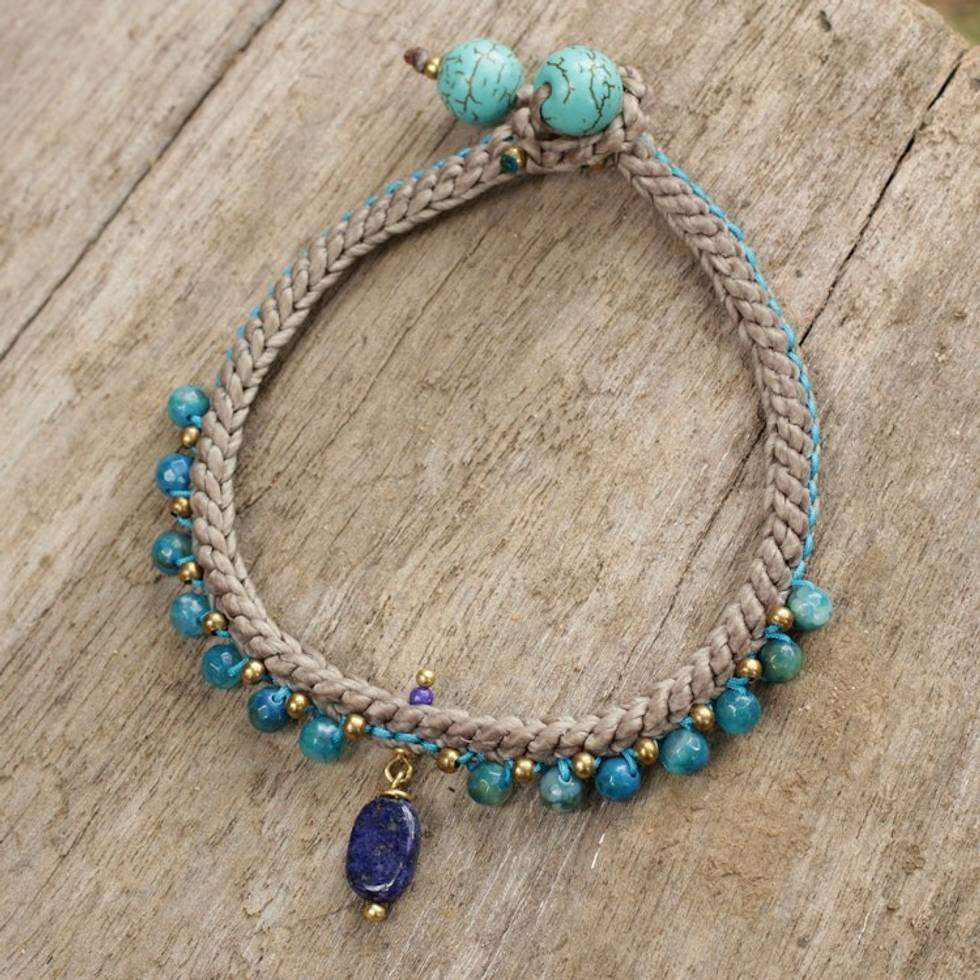 Lapis Lazuli and Agate Braided Bracelet with Brass Beads 'Mae Sa Cascade' Item ID: 2671802519