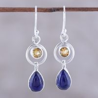 Lapis Lazuli and Citrine Dangle Earrings from India 'Gleaming Midnight' Item ID: 2669925142