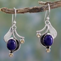 Lapis Lazuli and Citrine Hook Earrings 'Dew Blossom' Item ID: 2671793064