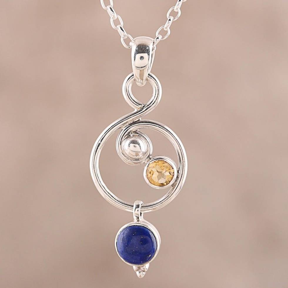 Lapis Lazuli and Citrine Necklace Crafted in India 'Swirling Royal' Item ID: 2669923962