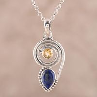 Lapis Lazuli and Citrine Pendant Necklace from India 'Wondrous Coil' Item ID: 2669925575