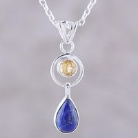 Lapis Lazuli and Citrine Pendant Necklace from India 'Gleaming Midnight' Item ID: 2671792798