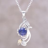Lapis Lazuli and Citrine Sterling Silver Pendant Necklace 'Seaside Bloom' Item ID: 2671790479