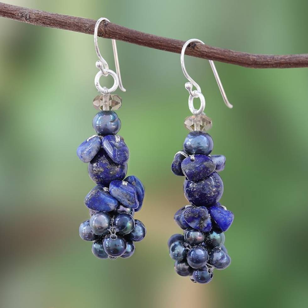 Lapis Lazuli and Cultured Pearl Cluster Earrings 'Heaven's Gift' Item ID: 2669928141