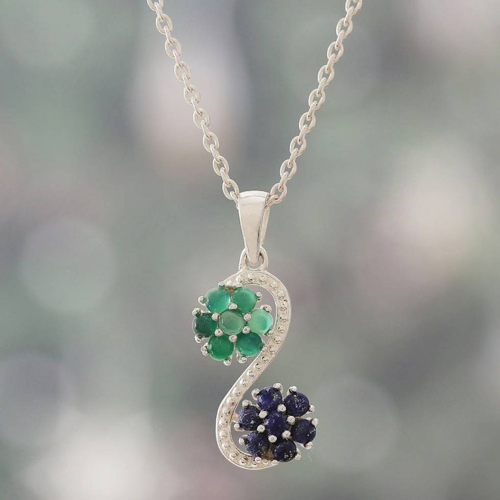 Lapis Lazuli and Green Onyx Cabochon Pendant Necklace 'Serpentine Symphony' Item ID: 2671625210