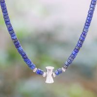 Lapis Lazuli and Karen Silver Beaded Necklace from Thailand 'Lapis Lazuli Love' Item ID: 2676652963