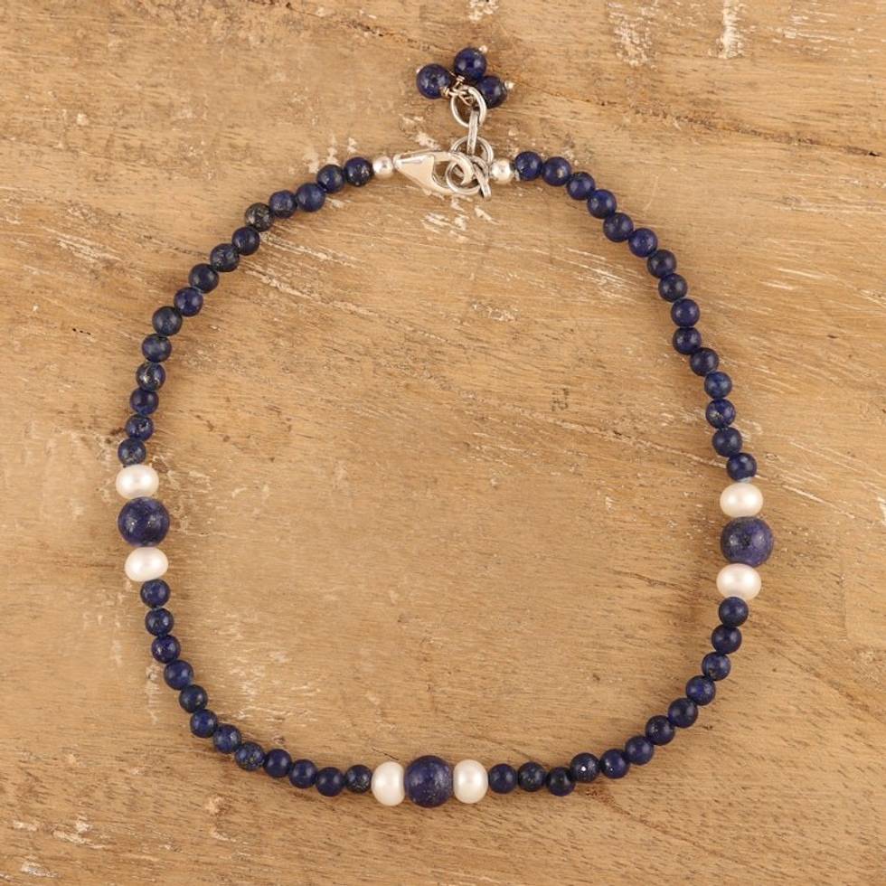 Lapis lazuli and pearl beaded anklet 'Mystic Truth' Item ID: 2669923929